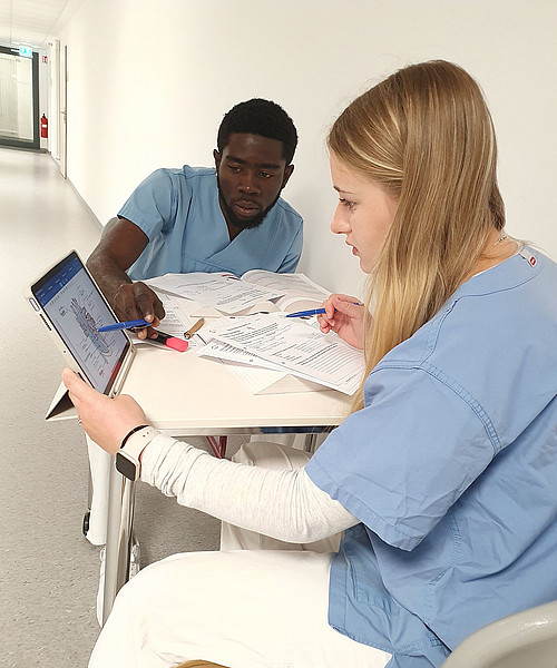 Wie fühlt es sich an, gefüttert zu werden? Und wie, jemanden zu füttern? Wie gehe ich mit schwierigen Patienten um? Wie viel Druck übt man bei einer Wiederbelebung auf den Brustkorb des Patienten aus? Und wie lagert man rückenschonend eine bewegungseingeschränkte Person? Diese und andere typische Situationen spielen wir in sicherer Umgebung in Rollenspielen und Selbstversuchen im Unterricht durch.
