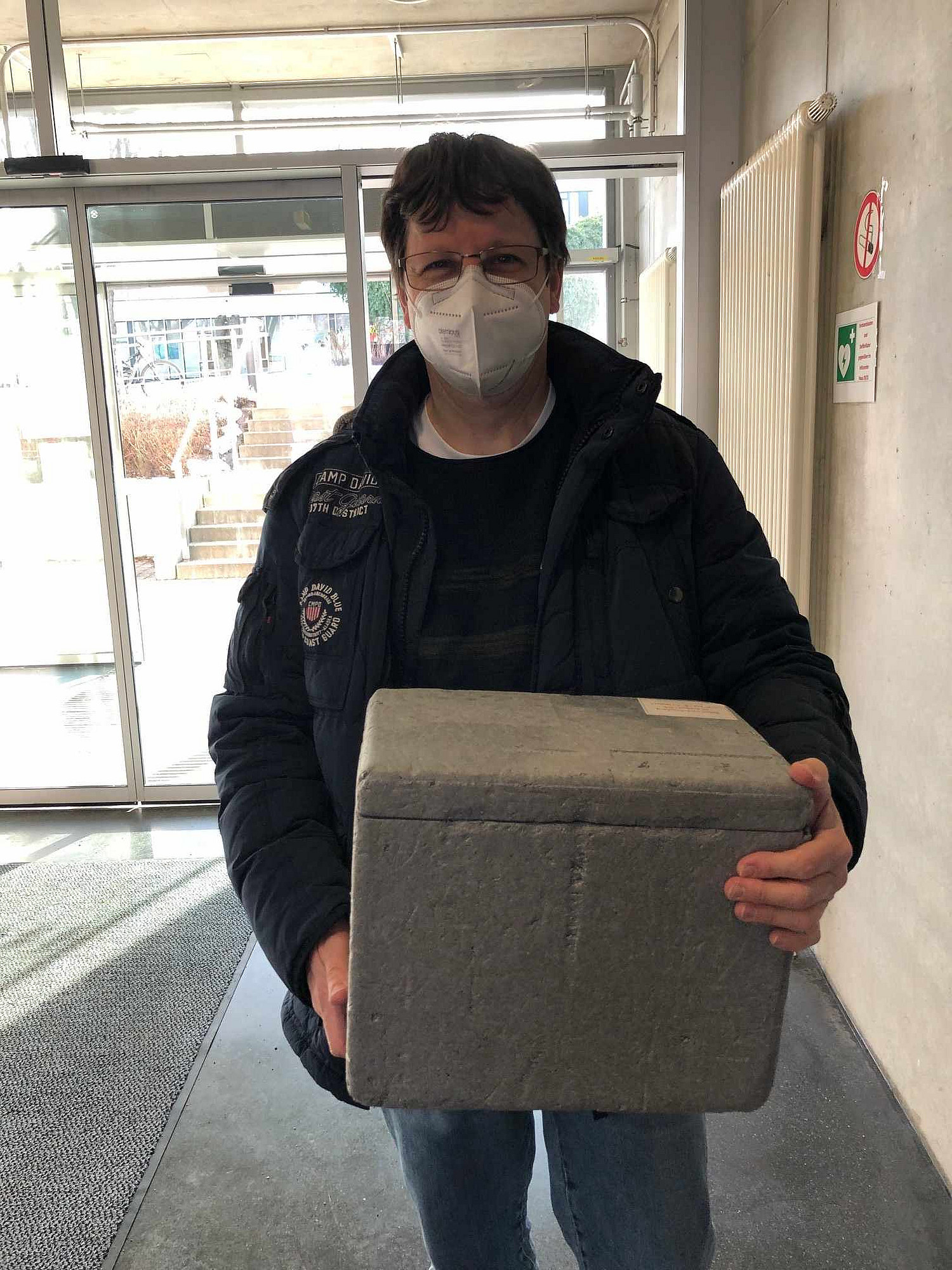 Jörg Pfeiffer, Leiter der medbo Apotheke, bringt frischen Impfstoff